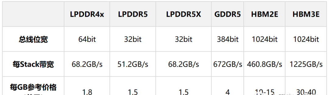 如何計算存儲帶寬,芯片本身都有存儲管理器,這通常是CPU的一部分,決定存儲帶寬的有兩點,首先是CPU支持的存儲類型,即存儲的物理層和控制器,其次是CPU的存儲帶寬,LPDDR的存儲帶寬最高一般是256比特,GDDR可以到384比特,HBM可以到4096甚至8192比特,這些都關聯成本,廠家在設計芯片時,會在成本和性能之間找一個平衡點,有些廠家偏重成本,那就64比特甚至32比特,有些偏重性能,如真正的AI芯片,無一例外都是HBM的,成本都在1500美元以上。